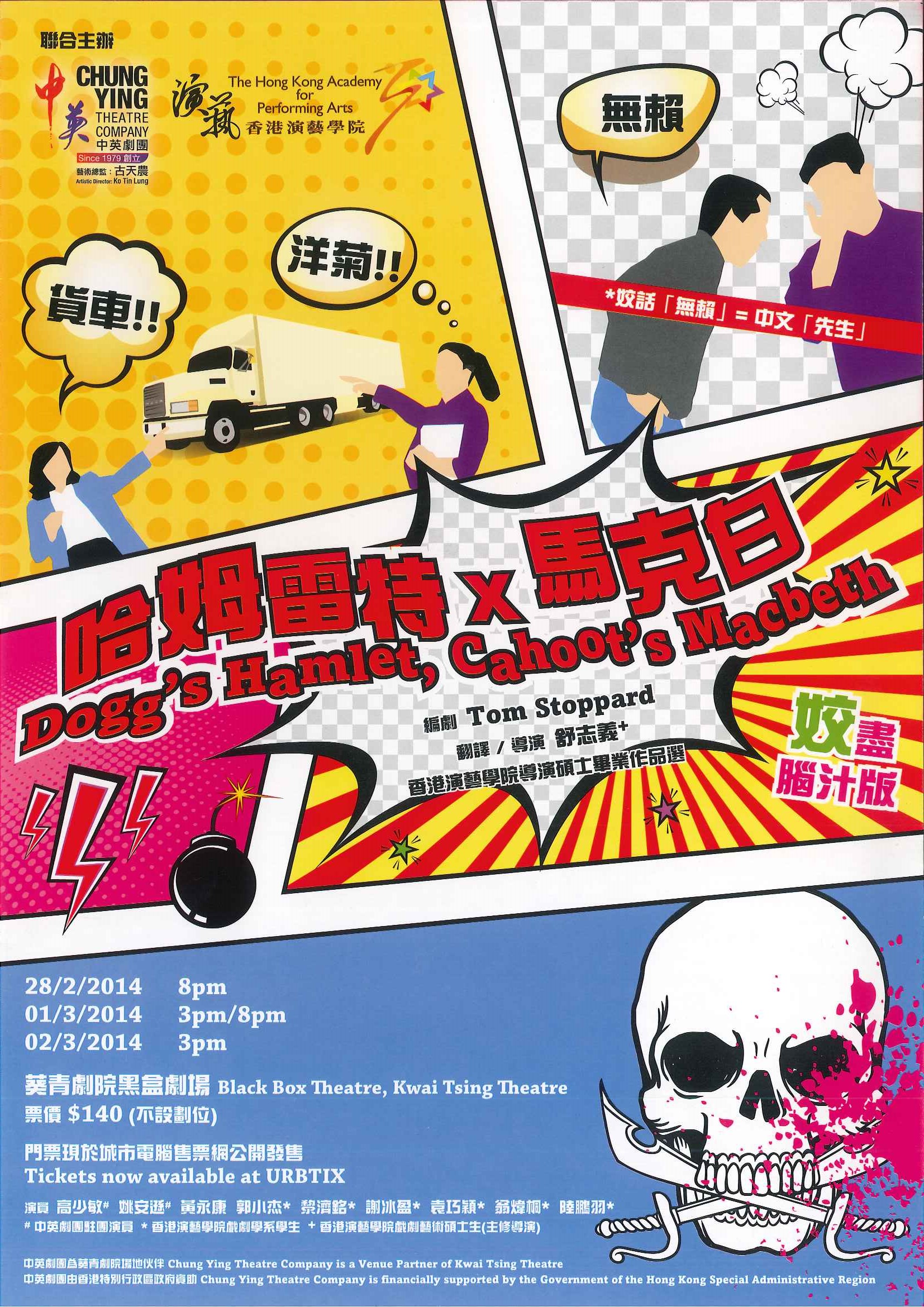 Dogg’s Hamlet是作者Tom Stoppard得到哲學家Ludwig Wittgenstein的啟發下所創作。三位不同鄉下的小演員排練外語版《哈姆雷特》,「人話」即變「鬼話」,同一詞分別讀成「木方」及「唔該」,一片混亂。要溝通,就要選擇變人或變鬼…… Cahoot’s Macbeth是承Dogg’s Hamlet而創作。故事提到《馬克白》充滿反政府意味,演員要逃過審查根本沒有可能,幸得Dogg’s Hamlet中識講「鬼話」的阿易出現,教演員講「鬼話」,成功協助各人逃過幫辦的耳目…… 溝通是見人講人話,見鬼講鬼話?還是見人講鬼話,見鬼講人話?