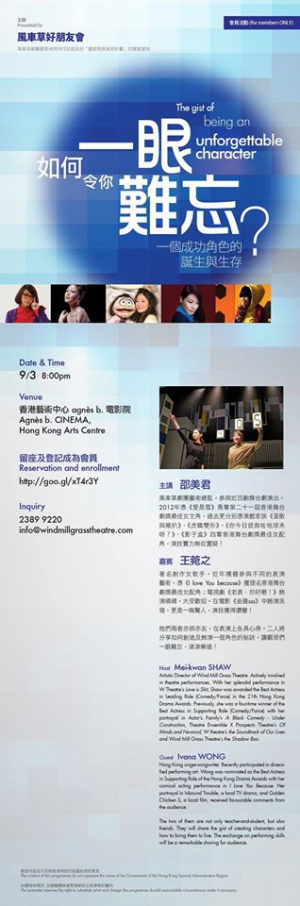 由陳馮美蟬到賤女人Lucy;由晴晴到吳璐,邵美君和Ivana演的每個角色都深入民心,在表演上各具心得。究竟是如何演活一個角色?是次為風車草好朋友會會員活動, 亦師亦友的邵美君和Ivana將會首次分享如何創造及飾演一個角色的秘訣,讓觀眾們一眼難忘,津津樂道!