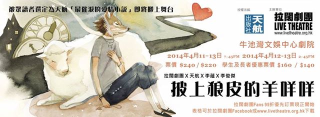 拉闊劇團明年踏入10周年,我們將會有數個重頭劇,首先打頭陣的是炙手可熱的小說家天航的愛情小說改編《披上狼皮的羊咩咩》,此劇是《戀上白羊的弓箭》的後續故事,將於明年4月初公演,分別由戲劇農莊兼澳門星級演員李俊傑(Jacky),及於鄭梓靈愛情小說改編《假如我們不是這樣開始》中飾演劉冬意而大受好評的歌手李蘊(Renne),分別擔演男女主角王宇聞及Antia。