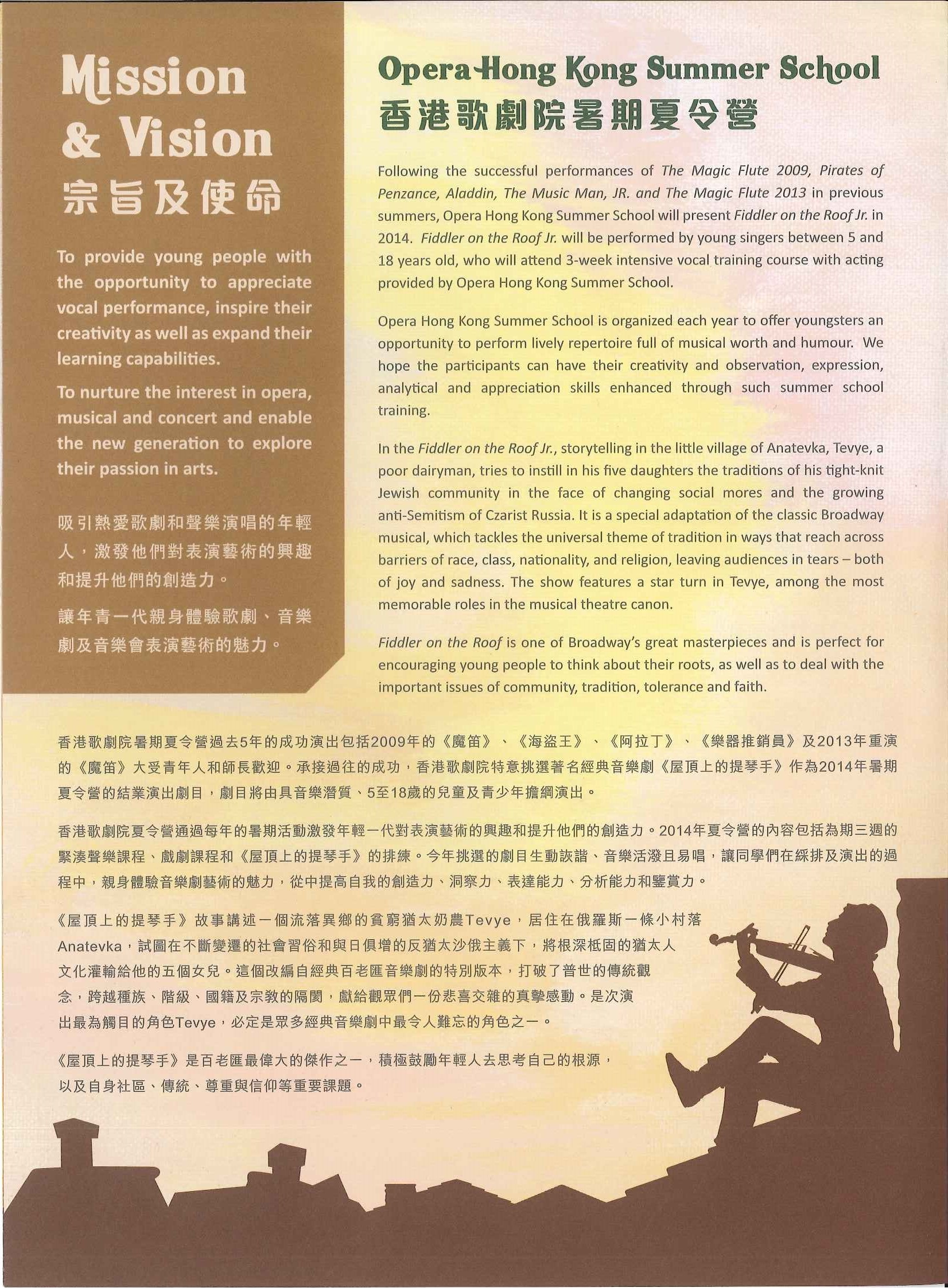 香港歌劇院夏令營《屋頂上的小提琴手》