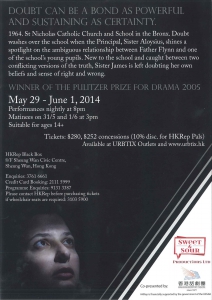 1964. St Nicholas Catholic Church and School in the Bronx. Doubt washes over the school when the Principal, Sister Aloysius, shines a spotlight on the ambiguous relationship between Father Flynn and one of the school’s young pupils. New to the school and caught between two conflicting versions of the truth, Sister James is left doubting her own beliefs and sense of right and wrong.