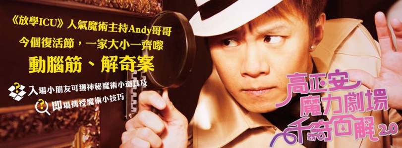 高正安魔力劇場《千奇百解2.0》首演反應熱烈,全部爆滿!暑假活動第一炮,全新魔術、全新體驗!香港首個結合劇場與魔術的表演藝術《放學ICU》人氣魔術主持Andy哥哥,將化身偵探,透過精彩的魔術表演,與所有大朋友小朋友一齊動腦筋,拆解一個個神秘謎團,釋放隱藏已久的秘密。今個暑假前夕,一家大小一齊嚟,動腦筋、解奇案。(入場小朋友可獲贈神秘魔術小道具,及即場傳授小魔術)