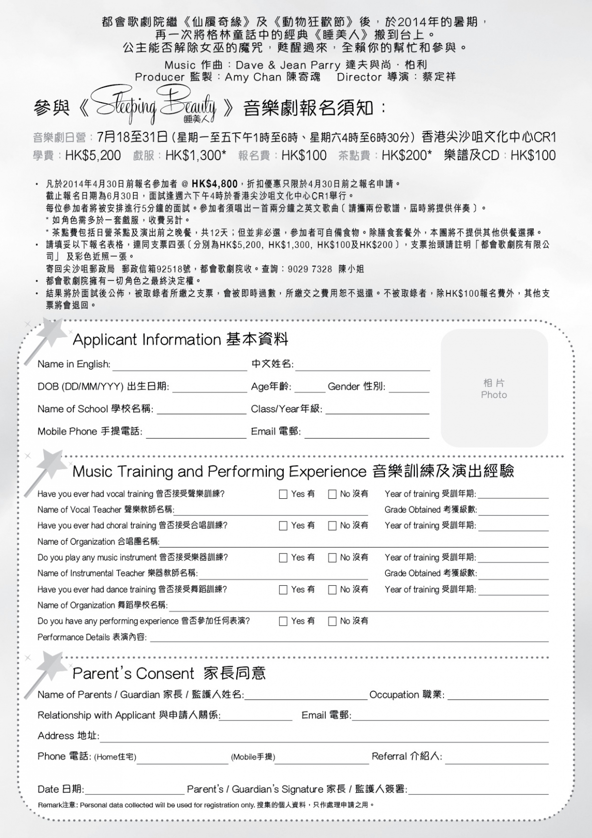 HK$ 5200(學費), 1300(戲服費), 100(報名費), 200 (茶點費), 100(樂譜及CD)