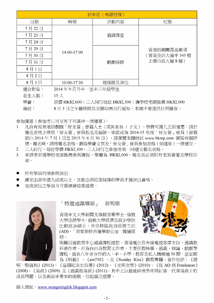 適合對象: 2014 年9 月升中一至中三年級學生