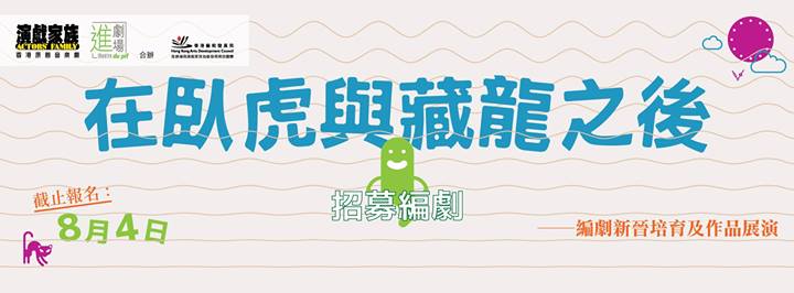 「劇場裡的臥虎與藏龍」編劇計劃自2006年由潘惠森先生於新域劇團開始,多年來孕育了過百個全新劇目。進劇場與演戲家族,深明優秀的編劇人材對香港戲劇藝術發展的重要,今年,希望為培育優秀編劇盡力,開展以公開演出為最終目標的新晉編劇培育計劃《在臥虎與藏龍之後-編劇新晉培育及作品展演》