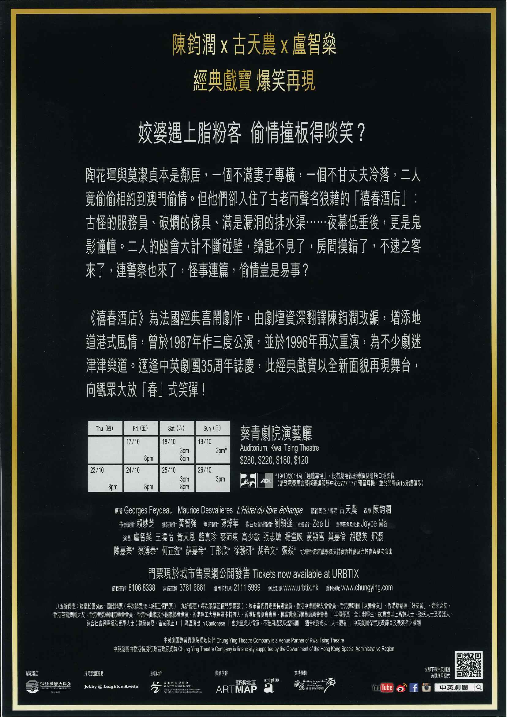 陶花琿與莫潔貞本是鄰居,一個不滿妻子專橫,一個不甘丈夫冷落,二人竟偷偷相約到澳門偷情。但他們卻入住了古老而聲名狼藉的「禧春酒店」:古怪的服務員、破爛的傢具、滿是漏洞的排水渠……夜幕低垂後,更是鬼影幢幢。二人的幽會大計不斷碰壁,鑰匙不見了,房間摸錯了,不速之客來了,連警察也來了,怪事連篇,偷情豈是易事?