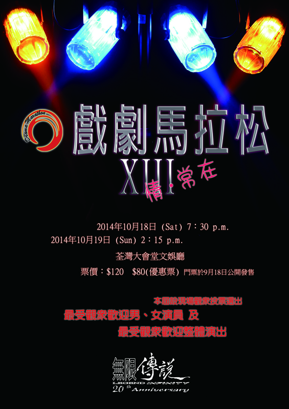 多年來,見參與者的成長,第十屆的「戲劇馬拉松」開始,無限傳說為培育新一批有志擔任導演、編劇或後台重位的成員一個實踐機會,讓他們一展潛能!於是,「戲劇馬拉松」再次重新定位,好讓新一代的演出者在這演出平台上,以各種的演繹、互相協作下親身體會舞台的全方位製作,盡情發揮個人獨特風格!