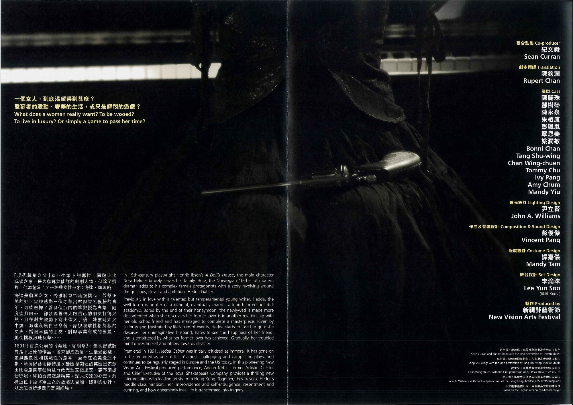 1891年首次公演的《海達.珈珼珞》,被譽為最具戲劇性和挑戰性的劇本,至今在歐美搬演不斷。新視野藝術節特邀享譽國際劇壇的英國皇家莎士比亞劇團前藝術及行政總監艾德里安.諾布爾擔任導演,夥拍香港戲劇精英,深入海達的心靈,解構這個生活幸福的中產將軍之女,怎樣步步走向悲劇終局。