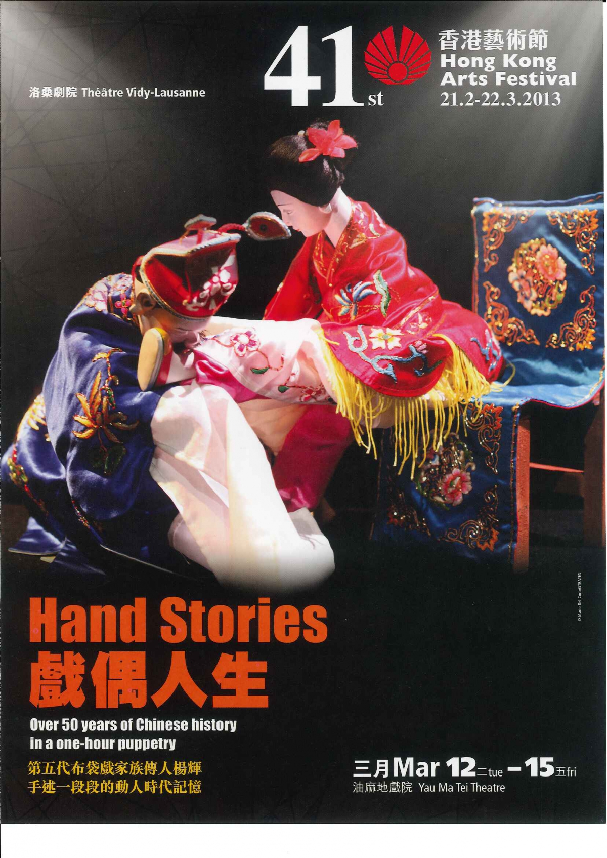 布袋戲藝術家楊輝,是顯赫布袋戲家族第五代傳人,父親楊勝在文化大革命時遭難,布袋戲藝術在紛亂的時代中差點失傳。 楊輝把這段家族藝術史,改編成感人至深的偶劇,將父親的秘密、操偶師的命運、紛亂的時代,以生動精緻的木偶、音樂及錄像演繹,一個個布偶在楊輝的操縱下如精通十八般武藝,京劇的生、旦、淨、末、丑的角色扮演更是維妙維肖。 楊輝的親身演繹,人偶合一,加上新音樂及民謠樂曲,令人笑中有淚。 楊輝的家傳手藝在歐洲發揚光大,他的《戲偶人生》,結合傳統及現代舞台的風格,更在法國阿維濃藝術節一鳴驚人。