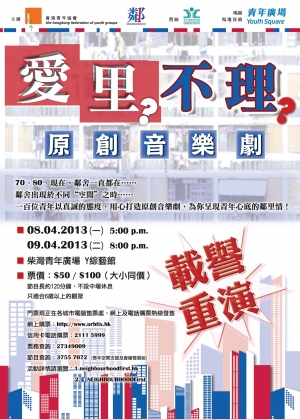 故事以一個虛擬的屋村即將清拆作為伏線,表演青年運用戲劇、原創歌曲及舞蹈,演繹80年代和現今屋村的鄰舍關係,呈現青年對香港本土的情懷與盼望。