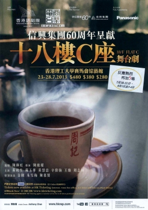 首播於1968年的商台廣播劇《十八樓C座》,為華語世界最長壽的廣播劇,歷時四十五載,仍然在熱播中。每集故事內容貼近市民生活,一眾角色形象鮮明,對白抵死幽默,包括周老闆、祥嫂、鬍鬚仔、「冇牙」三姑、孻表叔等街坊人物,日日與你論盡時事,見證著香港成長、起飛、經歷一個又一個歷史時刻,與你攜手構建的一個時代。今年,《十八樓C座》終於搬上舞台,在祈盼中呈現既熟悉又陌生的面貌。