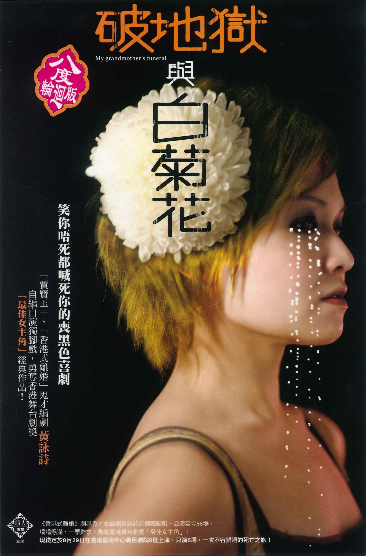 「破地獄與白菊花」是真人真事改編,黃詠詩的爺爺是個道長,家族生意是道教打齋;數年前祖母離世, 從小接受西方教育的她,參加了祖母那一場世紀喪禮,首次見識「破地獄」儀式,觸發創作,喪禮過程錯漏百出,引爆連串笑彈,卻牽起對先人無盡思念.