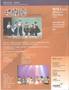同學將於學校區內的志願機構重演結業演出作品,讓社區更多未有機會接觸戲劇藝術的人士欣賞學生們的演出。活動整體上以探訪形式進行。