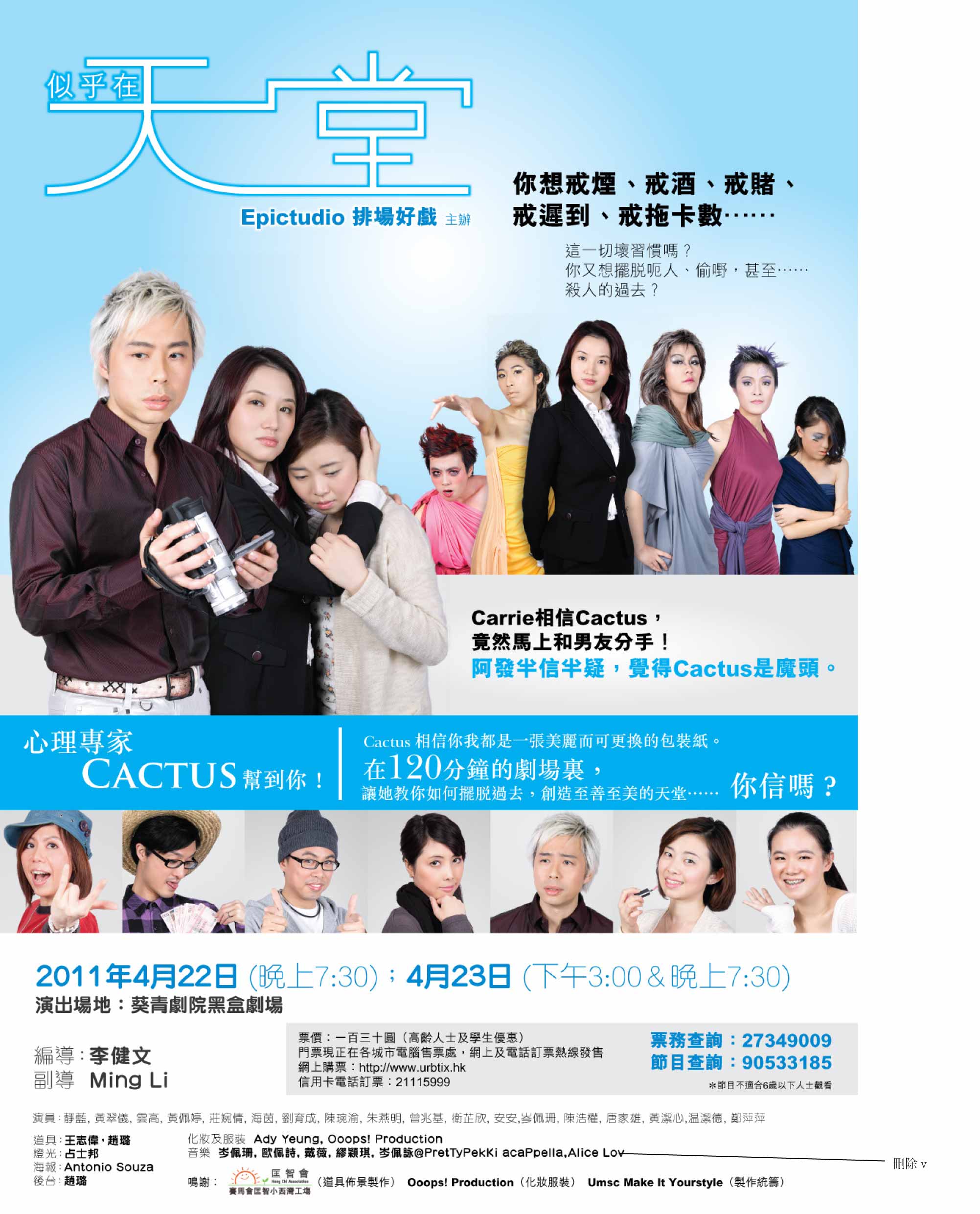 你想戒煙、戒酒、戒賭、戒遲到、戒拖卡數……這一切壞習慣嗎?你又想擺脫呃人、偷嘢,甚至……殺人的過去?心理專家Cactus 幫到你!Cactus 相信你我都是一張美麗而可更換的包裝紙。在120分鐘的劇場裏,讓她教你如何擺脫過去,創造至善至美的天堂……你信嗎?Carrie相信Cactus,竟然馬上和男友分手!阿發半信半疑,覺得Cactus是魔頭。