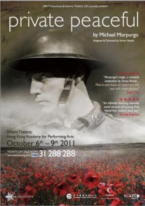 Private Peaceful relives the life of Private Tommo Peaceful, a young First World War soldier awaiting the firing squad at dawn. During the night he looks back at his short but joyful past growing up in rural Devon; his exciting first days at school; the accident in the forest that killed his father; his adventures with Molly, the love of his life; and the battles and injustices of war that brought him to the front line.