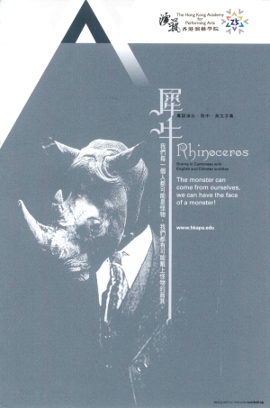 《犀牛》是荒誕劇的經典......一個人發現他身邊的所有人全變成犀牛......「犀牛症」的出現源於編劇的祖國羅馬尼亞的法西斯政權......今天,全球一體化及消費主義製造了另外一種的獨裁政體,產生了一種看不見的敵人!