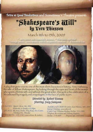 A play that gives voice to one of the most silent characters in history: Anne hathaway, the wife of William Shakespeare. By looking through the eyes and heart of the woman who spent a lifetime with-and without-the great writer, this work is the celebration of a life unbowed by tragedy and unapologetic in the face of public scorn.
