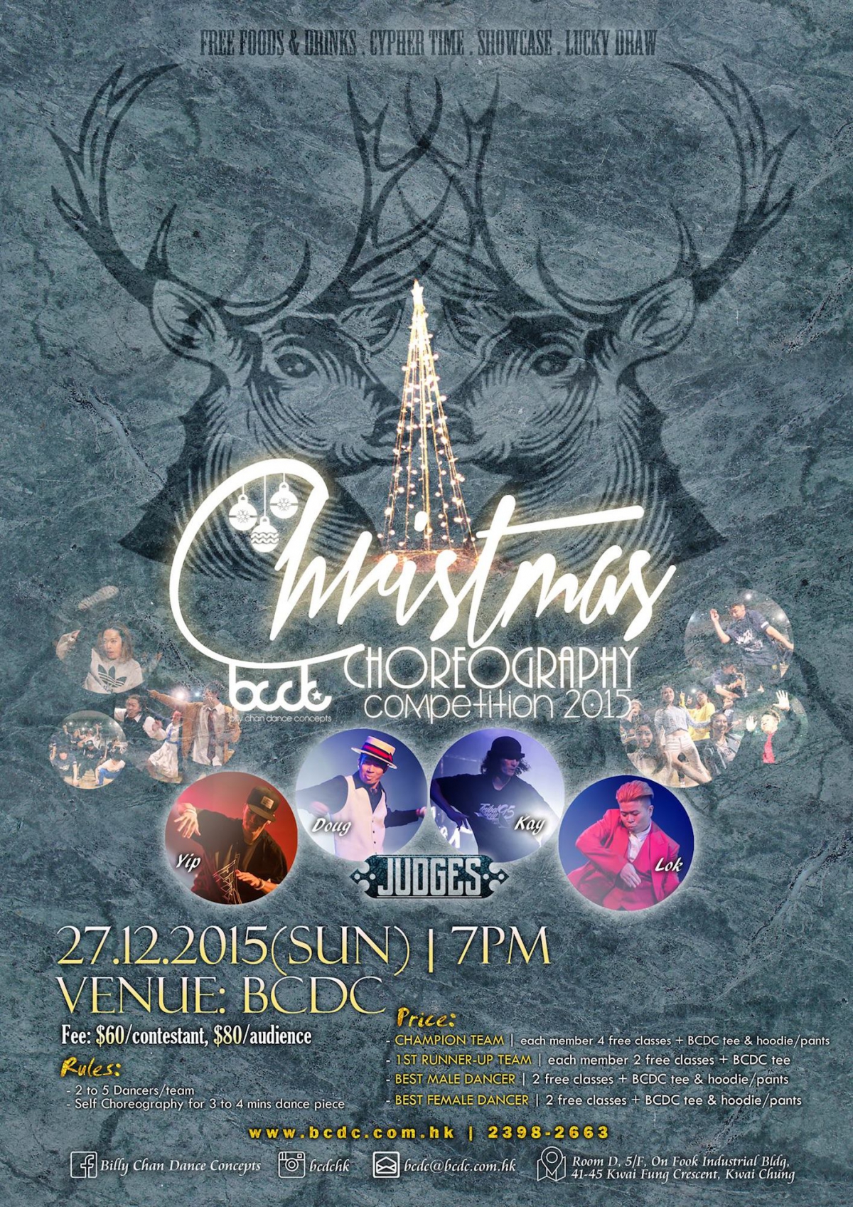 今年 已經係第三年舉行喇~繼續我地BCDC Family一貫作風, 同大家一齊開返個聖誕狂跳任飲任食大party~!!同往年一樣,比賽以小組型式進行,由2~5名學生組隊,自行排一段3~4分鐘的舞步,舞種與歌曲不限。評判將由本校導師 Popping Lok、DougLeeFunk 及 Yip 擔任, 今年更請到 小四老師 作為我地既Special Judge呢~