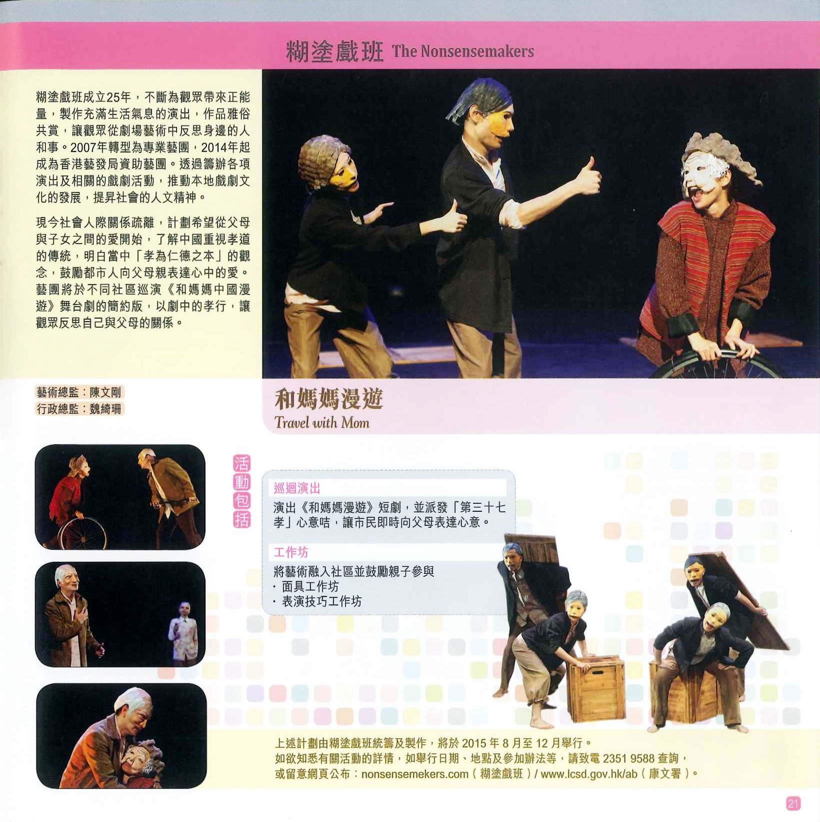 現今社會人際關係疏離,計劃希望從父母與子女之間的愛開始,了解中國重視孝道的傳統,明白當中「孝為仁德之本」的觀念,鼓勵都市人向父母親表達心中的愛。藝團將於不同社區巡演《和媽媽中國漫遊》舞台劇的簡約版,以劇中的孝行,讓觀眾反思自己與父母的關係。