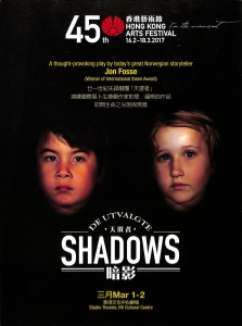 「天選者」首次訪港,順理成章帶來約恩‧福斯的名作《暗影》。被譽為當代易卜生的福斯,作品風格富詩意,題材抽象,文字清澈,曾先後奪得2010年國際易卜生獎等多個文學及戲劇獎項,作品於世界各地演出無數。「天選者」對《暗影》的詮釋耐人尋味,真人和錄像並置,四位老人在不明時空的房間回顧一生,心中所思,卻由六位天真小孩在錄像中娓娓道來,「返老還童」的思維更見澄明。詩意的對白縱橫交錯,生死過渡,交織出時間的循環往復,生命軌跡的交疊。如生命的安魂曲,淡淡然、戚戚然。導演嘉莉.賀頓更憑此劇獲提名挪威戲劇獎最佳導演。