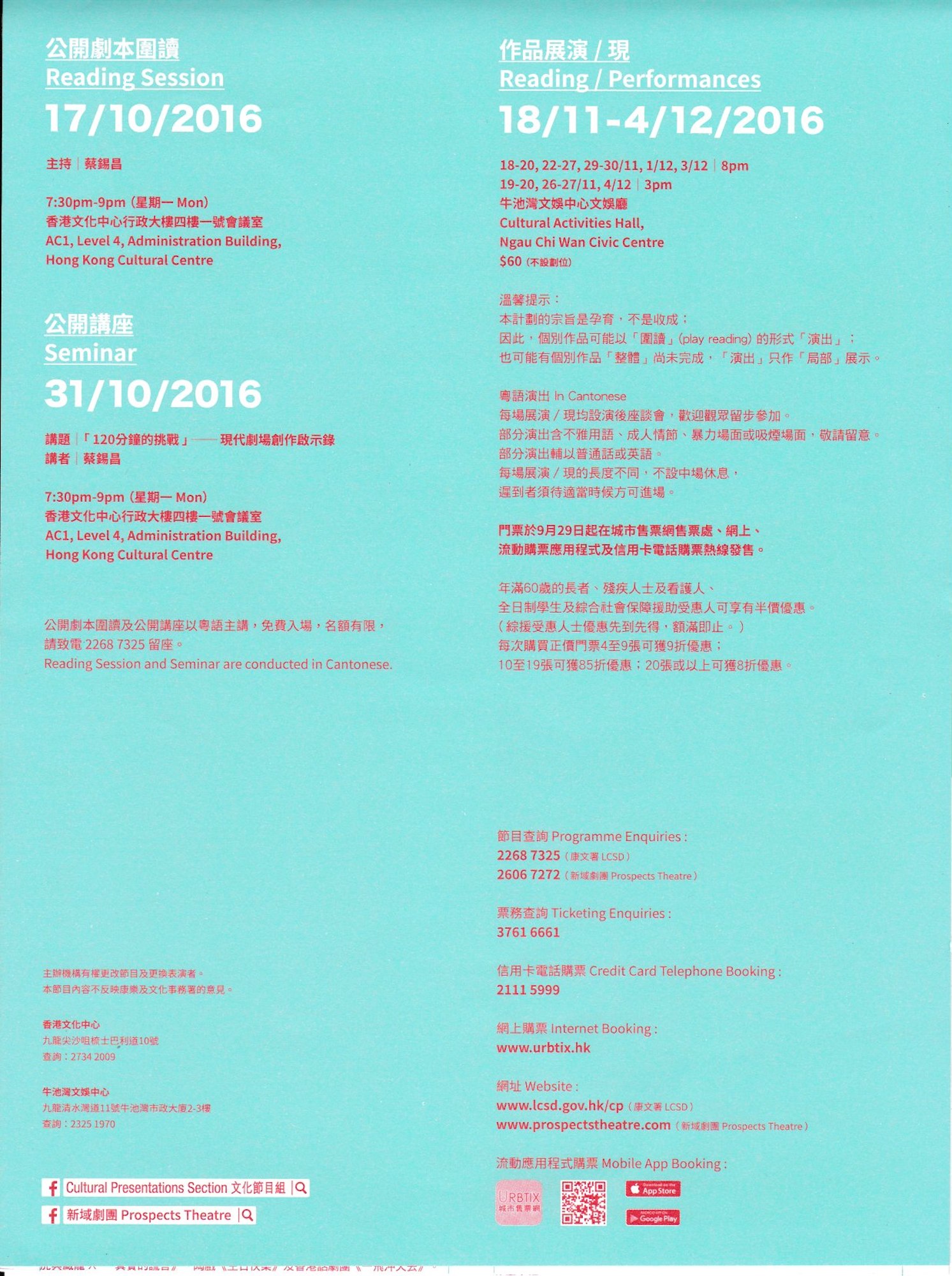 自2006年創辦至今,「劇場裏的臥虎與藏龍計劃」已邁進了第十一年。今年,繼續由潘惠森先生當召集人,率領十九位編劇走出來,一人一劇,與你分享十九個故事。