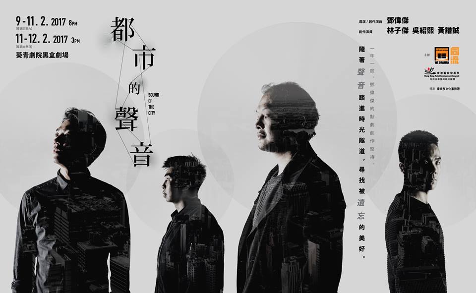《都市的聲音》 Sound of the city一年一度,鄧偉傑的默劇創作堅持。「隨著聲音踏進時光隧道,尋找被遺忘的美好。」《都市的聲音》是同流默劇系列中,以「生活在都市」為題創作的第二部曲。創作以我們在成長和生活中所熟悉的聲音作誘發點。在忙碌的生活中,在荒謬的世代中,藏身於那些看似習以為常的聲音背後,等待著我們的是希望還是夢魘?