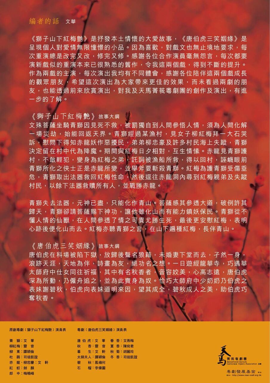 青獅失去法器,元神已盡,只能化作青山。菩薩感其參透大道,破例許其歸天,青獅卻請菩薩賜下神功,讓他雖化山而有能力鎮妖保民。青獅從不懂人情的仙獸,在人間參透了情之可貴更勝生死,最後更安慰紅梅,表明心跡後便化山而去。紅梅亦聽青獅之言,在山下遍種紅梅,長伴青山。
