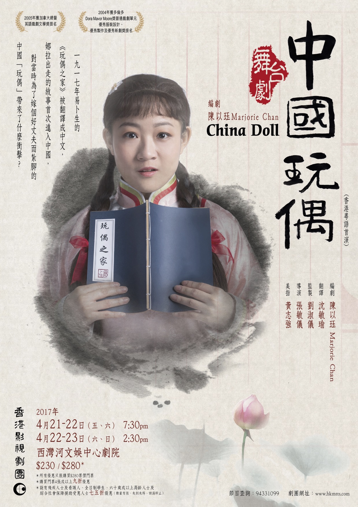 香港影視劇團2017年又一舉獻,今次選演加拿大華裔得獎劇作家陳以珏Marjorie Chan的作品《中國玩偶》China Doll。由新鮮出爐創意工業博士張敏儀執導。由黃詠文、謝月美、劉亭君及杜施聰演出。