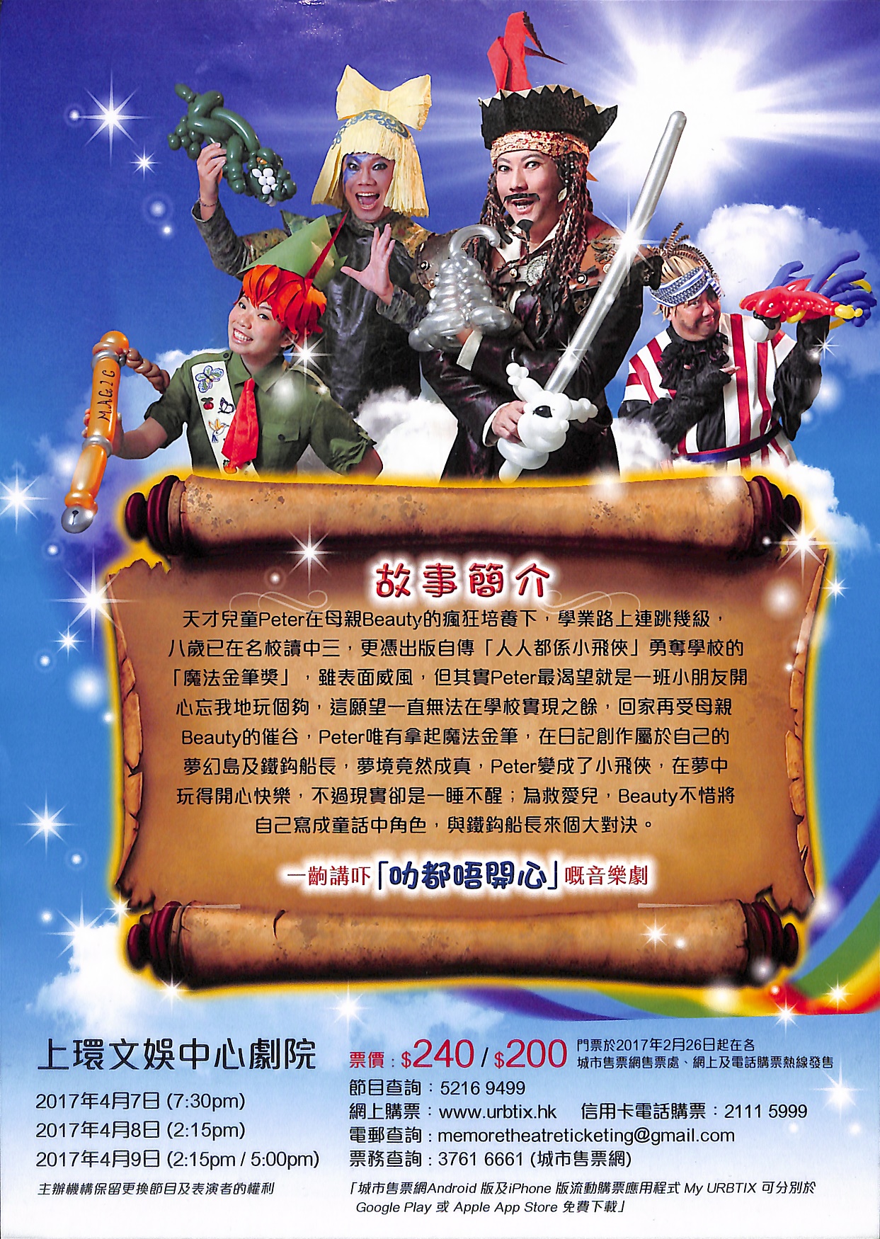 天才兒童Peter在母親Beauty的瘋狂培養下,學業路上連跳幾級,八歲已在名校讀中三,更憑出版自傳「人人都係小飛俠」勇奪學校的「魔法金筆獎」,雖表面威風,但其實Peter最渴望就是一班小朋友開心忘我地玩個夠,這願望一直無法在學校實現之餘,回家再受母親Beauty的催谷,Peter唯有拿起魔法金筆,在日記創作屬於自己的夢幻島及鐵鈎船長,夢境竟然成真,Peter變成了小飛俠,在夢中玩得開心快樂,不過現實卻是一睡不醒;為救愛兒,Beauty不惜將自己寫成童話中角色,與鐵鈎船長來個大對決。