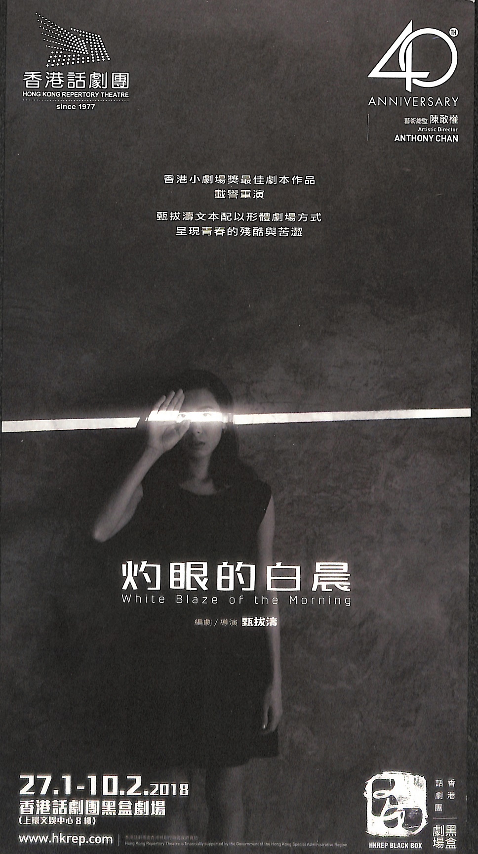 《灼眼的白晨》由人氣得獎編劇甄拔濤撰寫,五位新生代演員演繹。2015年首演好評如潮,一票難求,是次載譽重演,再次在黑盒劇場中剖析年輕人的核心世界,直視誰都不能掙脫的現實。