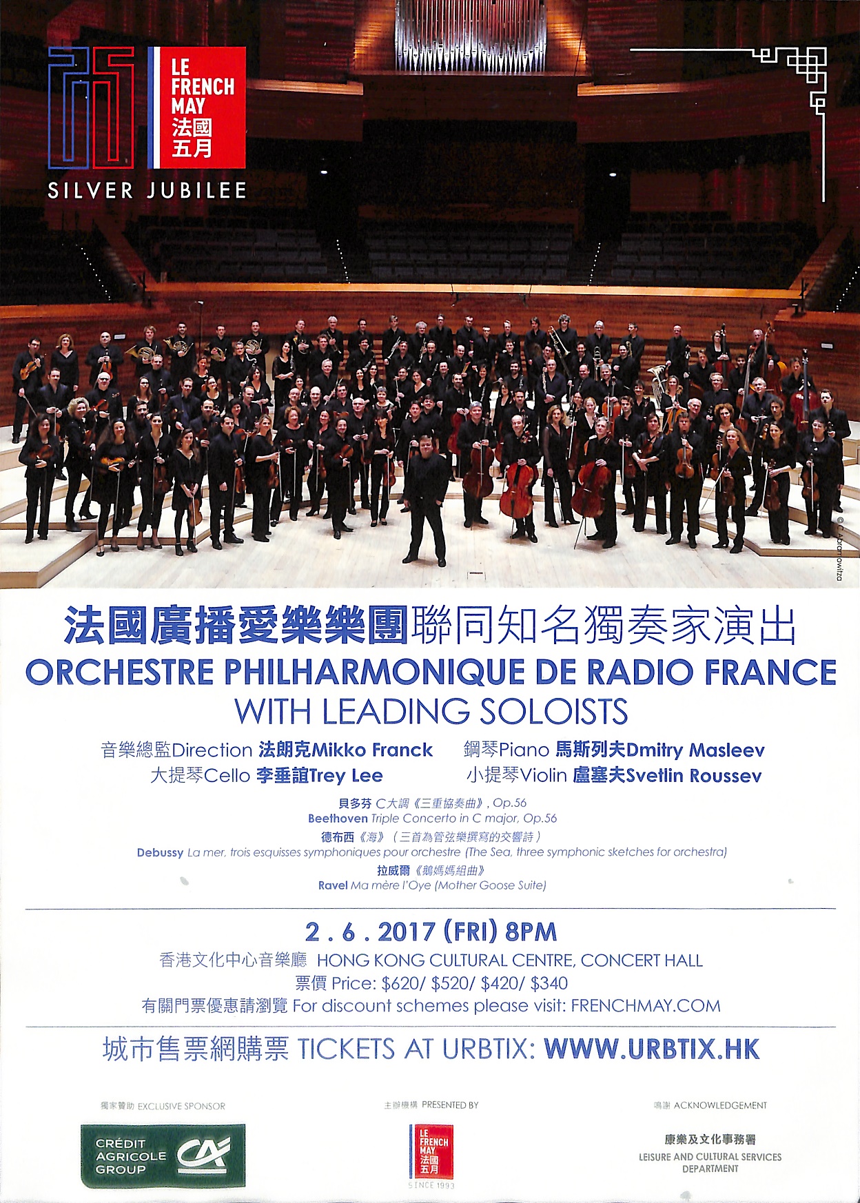 為慶祝法國五月節的銀禧紀念,主辦單位特別邀請了著名的法國廣播愛樂樂團和他們的總監法朗克蒞臨香港。