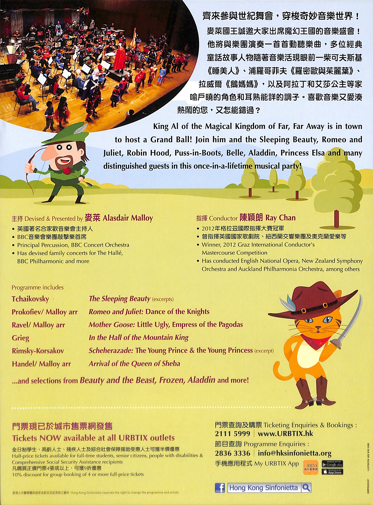 麥萊國王將聯同香港小交響樂團為大家舉行一場世紀舞會,施展魔幻魅力演奏多首經典樂曲!喜歡音樂又愛湊熱鬧的你,又怎能錯過這場音樂盛會?誠邀大家盛裝打扮,展開魔幻王國之旅﹗