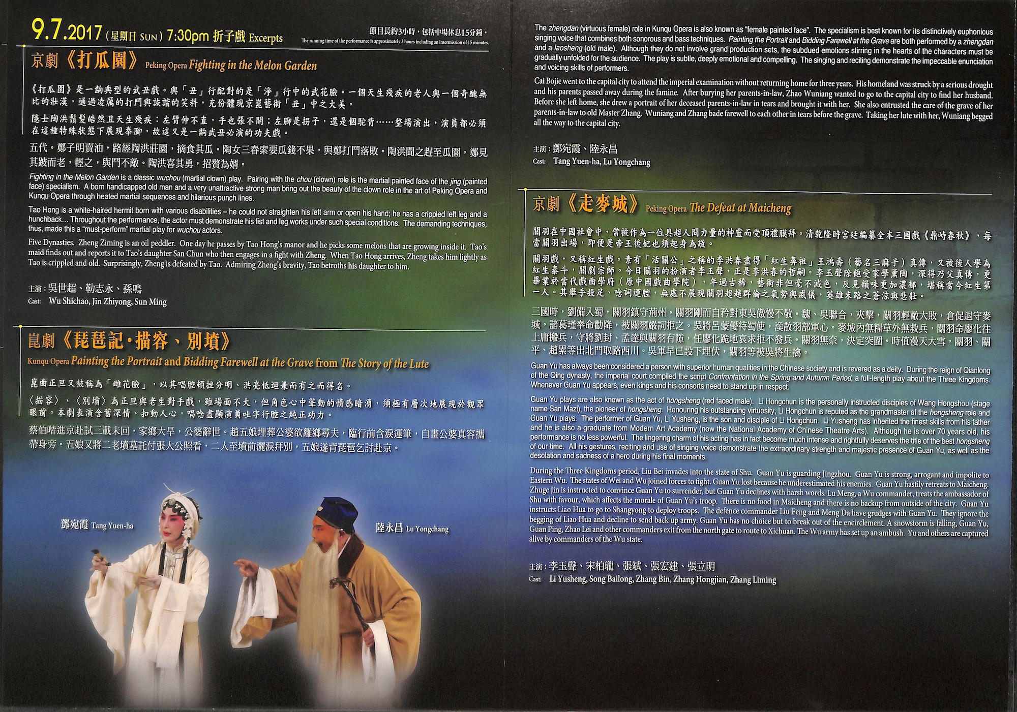 折子戲戲碼:《打瓜園》|(京劇)、《琵琶記‧描容、別墳》|(崑劇)、《走麥城》|(京劇)