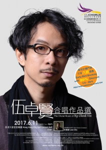 由中大合唱協會有限公司主辦的《伍卓賢合唱作品選》音樂會將於 2017 年 6 月 11 日(星期日)晚上八時舉