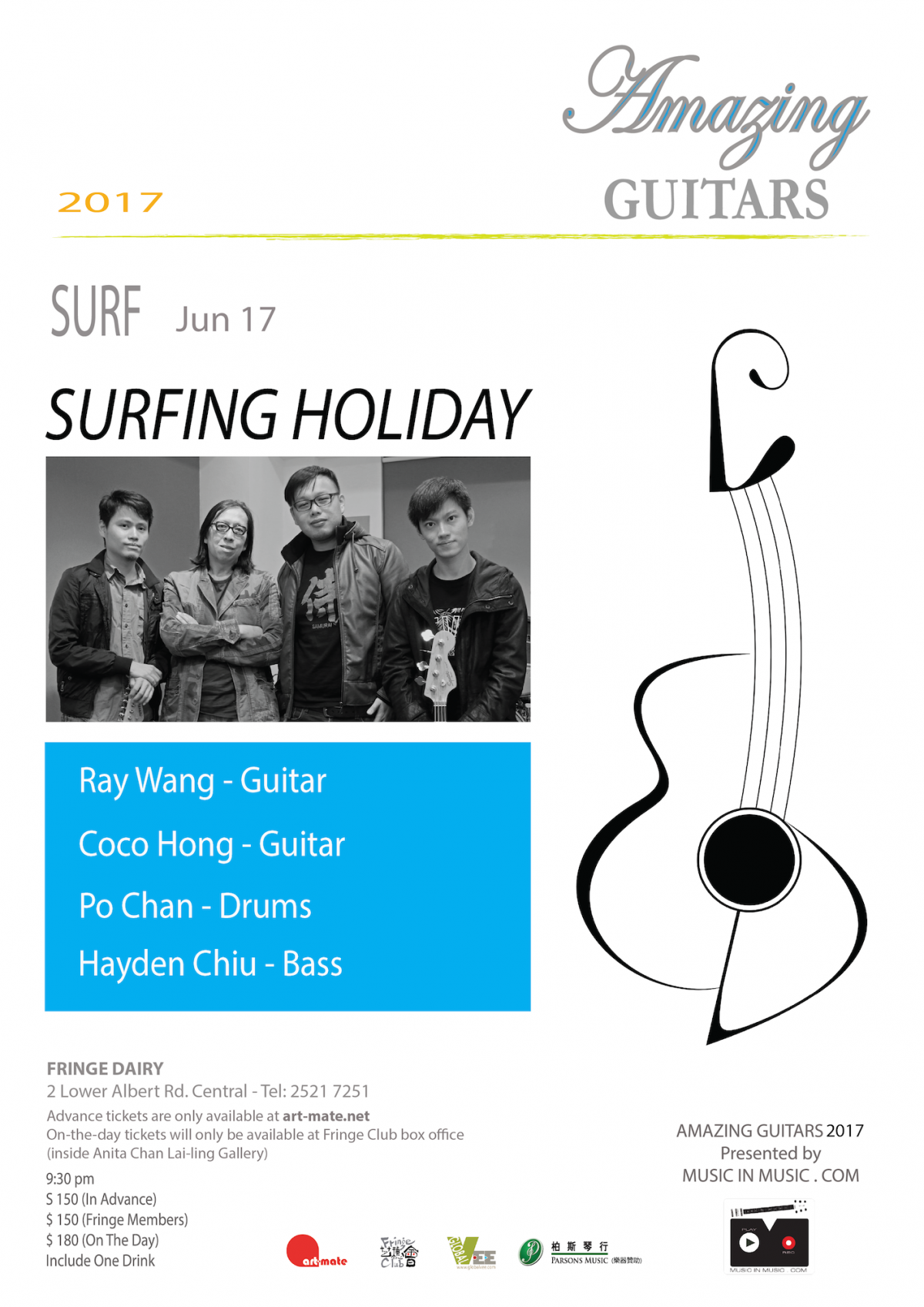 滑浪結他音樂 (Surf Guitar Music) 為六十年代的純結他音樂。在結他音樂史上最鼎盛時期, 滑浪結他音樂紛紛打進各大音樂流行榜,銷量以數十萬計。回顧當時美國最流行玩意正是滑浪 (Surfing) ,因而掀起一系列滑浪文化、態度和音樂。表演樂手以特别技巧彈岀似浪花震動的音樂效果,所以被稱為滑浪結他 (Surf Guitar) 。而近這十年間滑浪結他音樂亦為中外電影配樂的寵兒,所以今次 Amazing Guitars 認為這經典年代的音樂不能錯過,值得重温!
