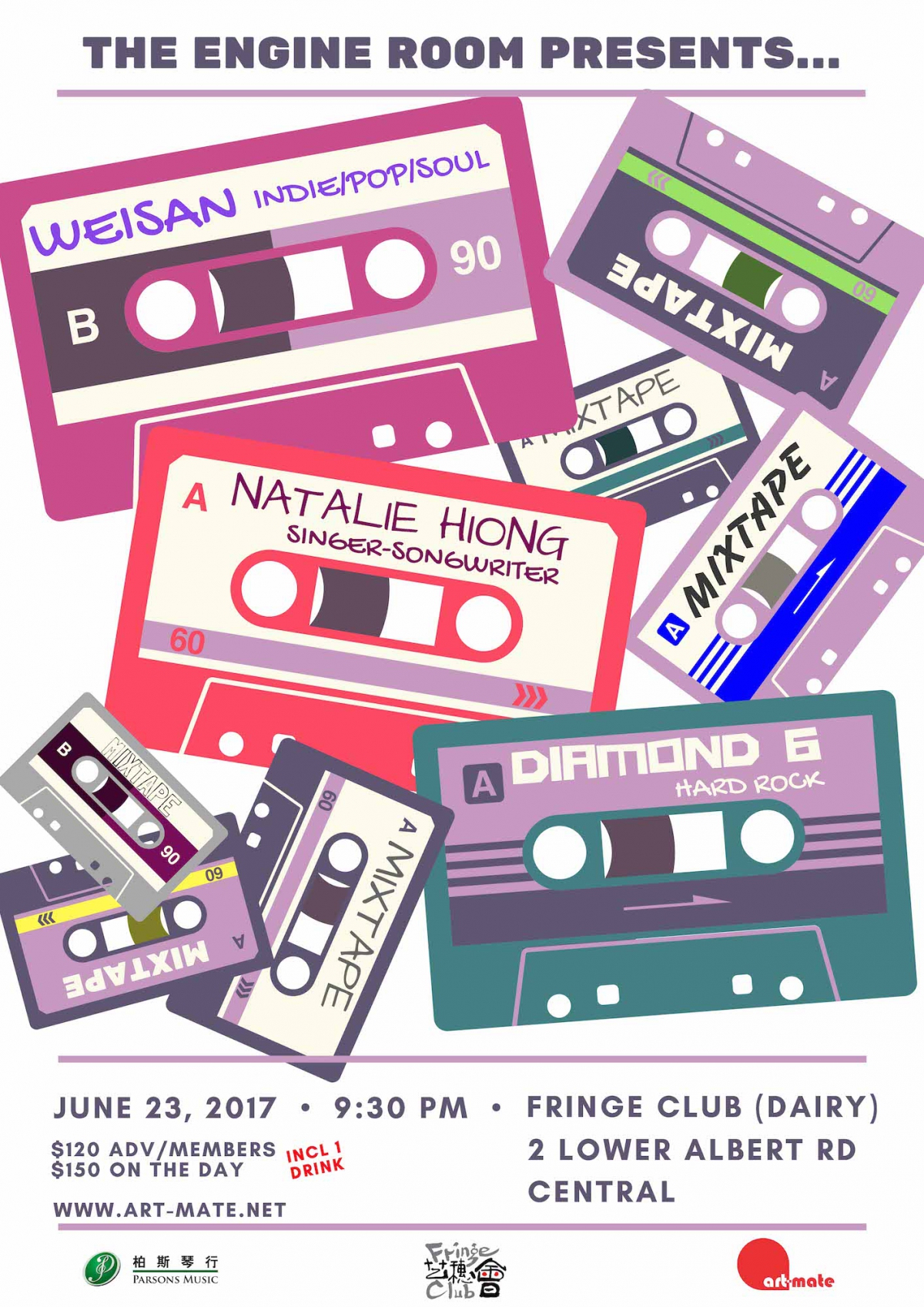 因私人理由,原定2017年6月23日 (五) 9:30PM於藝穗會奶庫舉行的「Mixtape @ The Fringe Club」音樂會將會取消。已購買門票的觀眾,可於2017年6月22 日(四) 到6月30日 (五) 到藝穗會票房,憑art-mate.net的確認電郵辦理退票手續。門票金額將全數以現金即時發還。申請人必須即時核對退款及簽收確認。2017年6月30日(五)後的退款申請一概不受理。不便之處,敬請原諒。謝謝!