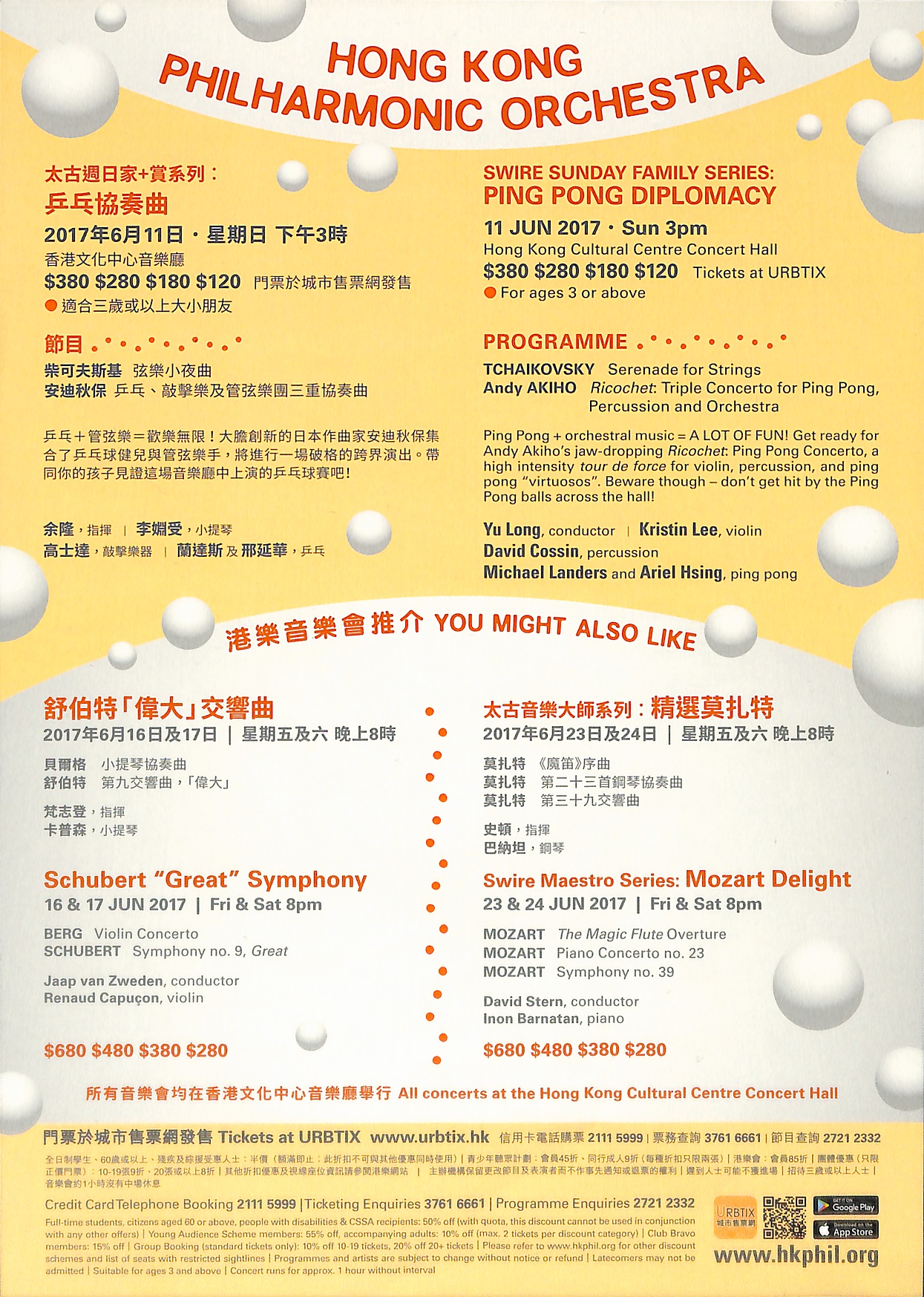 節目柴可夫斯基弦樂小夜曲 安迪秋保乒乓、敲擊樂及管弦樂團三重協奏曲 乒乓+管弦樂=歡樂無限!大膽創新的日本作曲家安迪秋保集合了乒乓球健兒與管弦樂手,將進行一場破格的跨界演出。帶同你的孩子見證這場音樂廳中上演的乒乓球賽吧!