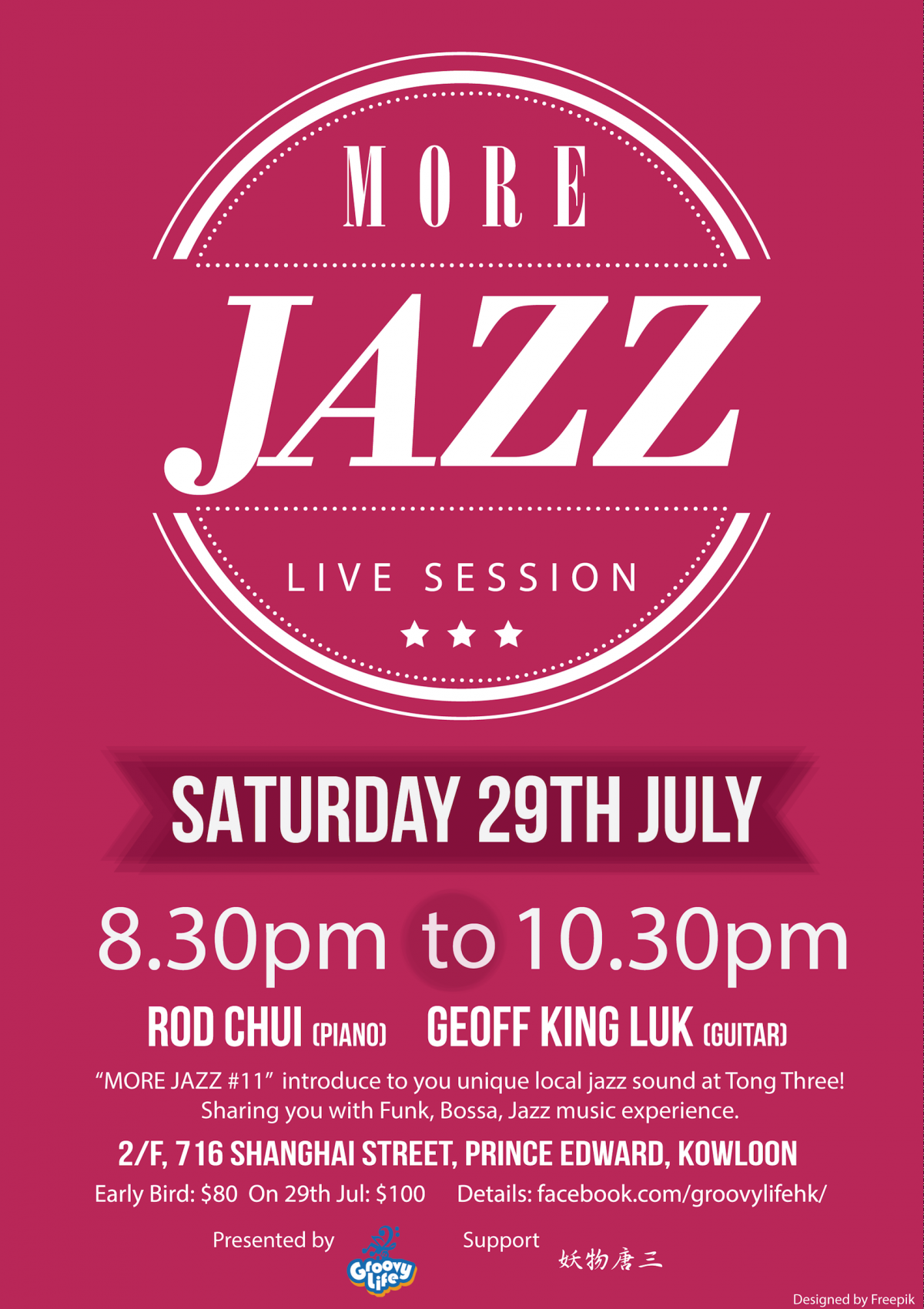 “MORE JAZZ #11” introduce to you unique local jazz sound at Tong Three! Sharing you with Funk, Bossa, Jazz music experience.