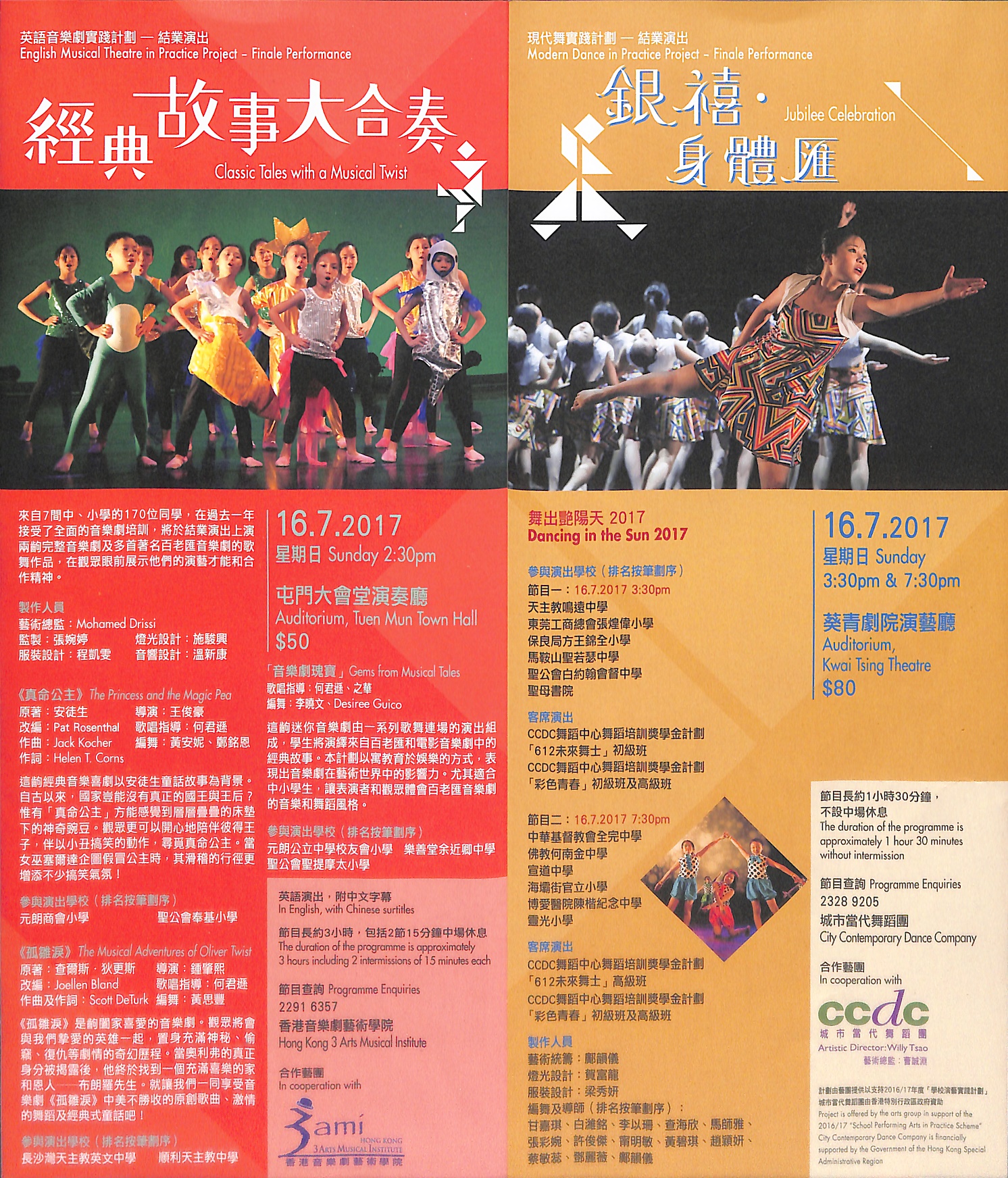 參與計劃的同學在經過一連串粵劇唱做的基本訓練後,將表演集體把子套數,更會演出梁森兒新編的兒童粵劇《神燈》,故事改編自馮寶寶主演的粵語電影,以宣揚仁愛孝義為主題。講述神燈落難凡間,遇上善良村民江水父女,二人受地方惡霸只老虎欺壓,神燈與江水一家互相扶持,終令惡霸受到懲罰。