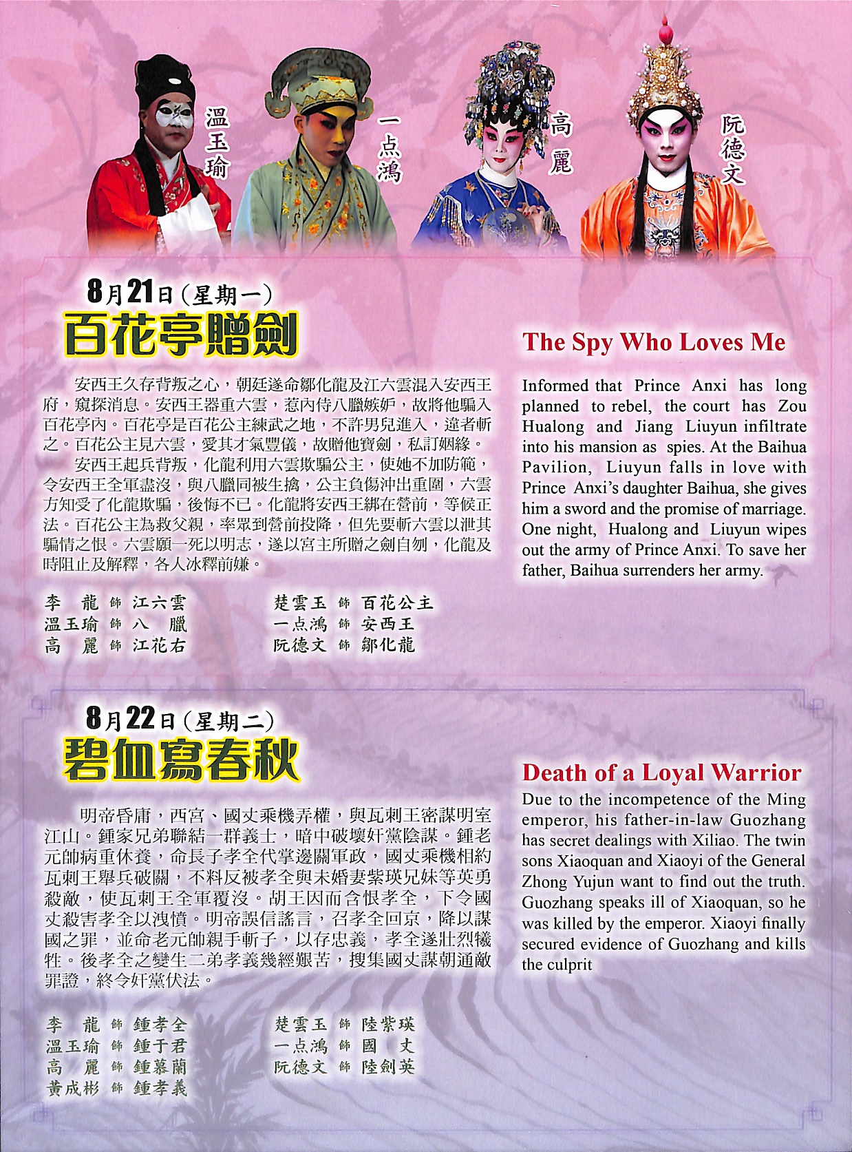 明帝昏庸,西窩、國艾乘機弄權」與瓦剌王密謀明寧」 江山。鍾家兄弟聯結一群義士,暗中破壞奸黨陰謀。鍾老。 元帥病重休養,命長子孝全代掌邊關軍政,國丈乘機相約 瓦刺王舉兵破關,不料反被孝全與未婚妻紫瑛兄妹等英勇 |殺敵,使瓦刺王全軍覆沒。胡王因而含恨孝全,下令國丈殺害孝全以洩憤。明帝誤信謠言,召孝全回京,降以謀|國之罪,並命老元帥親手斬子,以存忠義,孝全遂壯烈犧 牲。 鷺鷺° ,搜集國丈謀朝通敵 罪證,終令奸黨伏法。
