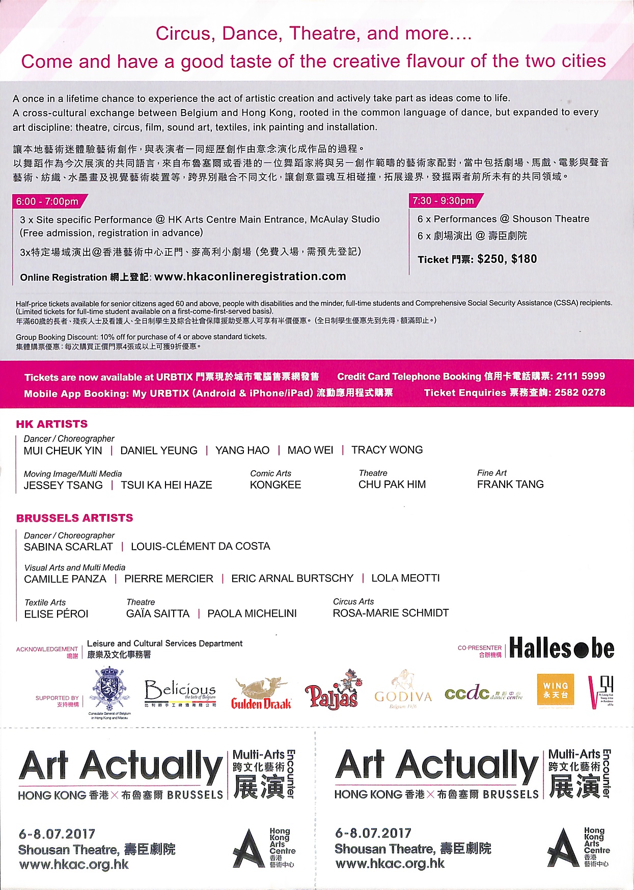 香港藝術中心與Les Halles de Schaerbeek於去年秋季在布魯塞爾合辦了「香港x布魯塞爾 跨藝術馬拉松2016」,反應熱烈載譽歸來,於九個月後為香港觀眾帶來九場跨藝術表演。