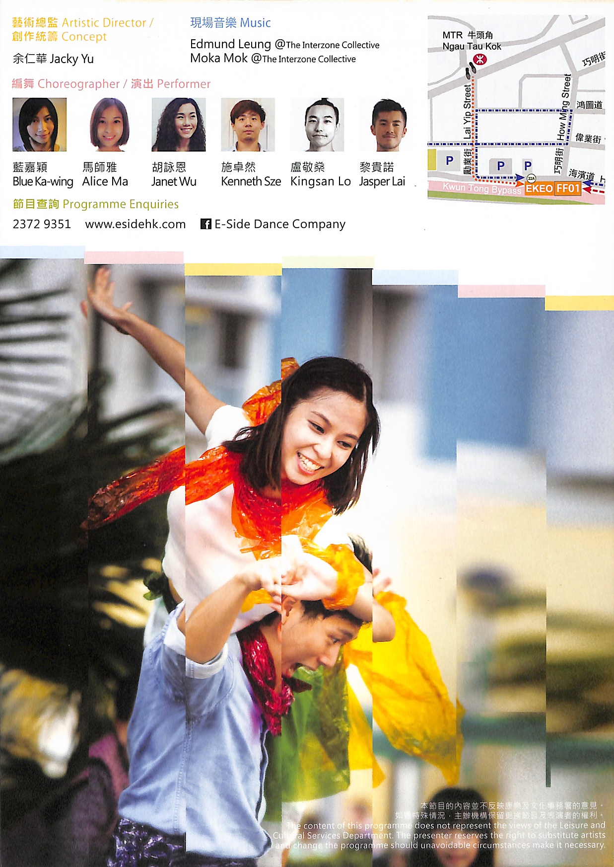 舞者將所思所想與大眾分享,以非一般的創意於社區跳出格,拉闊大家對舞台的想像,為社區創造樂趣無窮的空間,發掘及享受肢體表達的藝術。