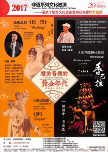 「非遺系列文化巡演2017」,以香港這個大都會舞台為平台,邀請來自雲南省滇劇院、兄弟藝盟-周龍工作室、北京的香巴拉劇團和香港藝術團隊等,共同呈獻一連6天的“非遺表演藝術盛宴”。