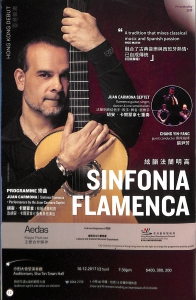 胡安‧卡爾蒙拿七重奏 - 法蘭明高結他手、歌手、舞者、器樂手 客席指揮 - 張尹芳胡安‧卡爾蒙拿 I絃韻法蘭明高及胡安‧卡爾蒙拿七重奏其他演出在法蘭明高音樂世界裡,胡安‧卡爾蒙拿是聲譽顯赫的人物,曾四度獲提名拉丁格林美獎。他所創作的《絃韻法蘭明高》,把充滿異國風情的安達盧西亞樂與西方古典樂融合,在一首樂曲中將法蘭明高結他與歌舞和管弦樂熱情交融,由此開創了一個新樂風。眾位樂迷可別錯過!