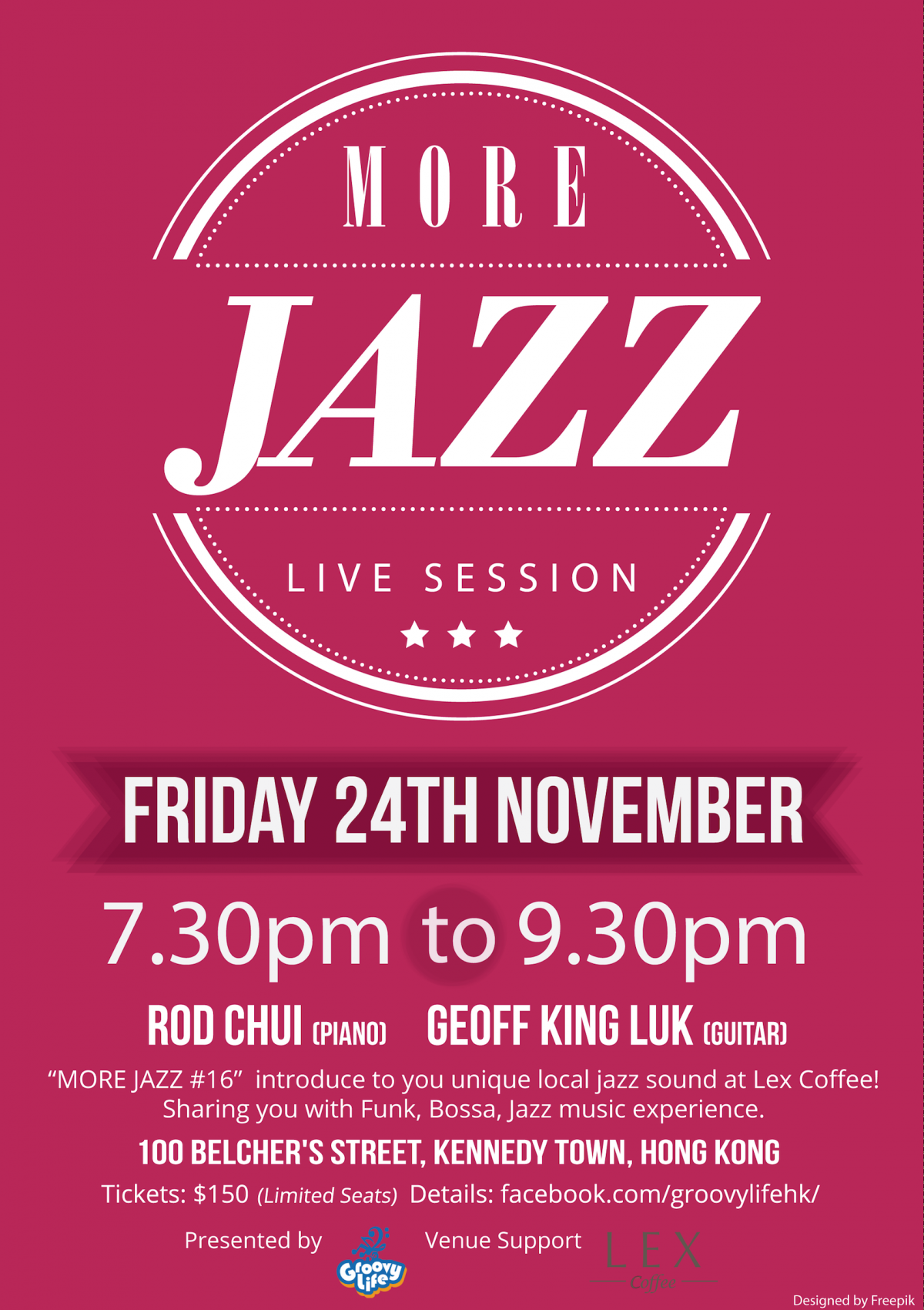 “MORE JAZZ #16” introduce to you unique local jazz sound at Lex Coffee!Sharing you with Funk, Bossa, Jazz music experience.