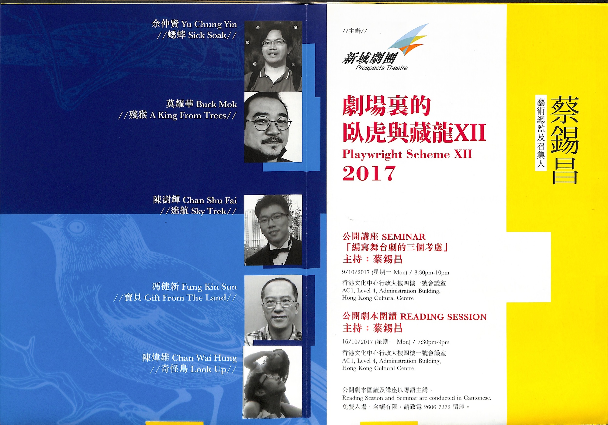 自2006年創辦至今,「劇場裏的臥虎與藏龍計劃」已邁進了第十二年。今年,由蔡錫昌先生當召集人,率領十位編劇走出來,一人一劇,與你分享十個故事。