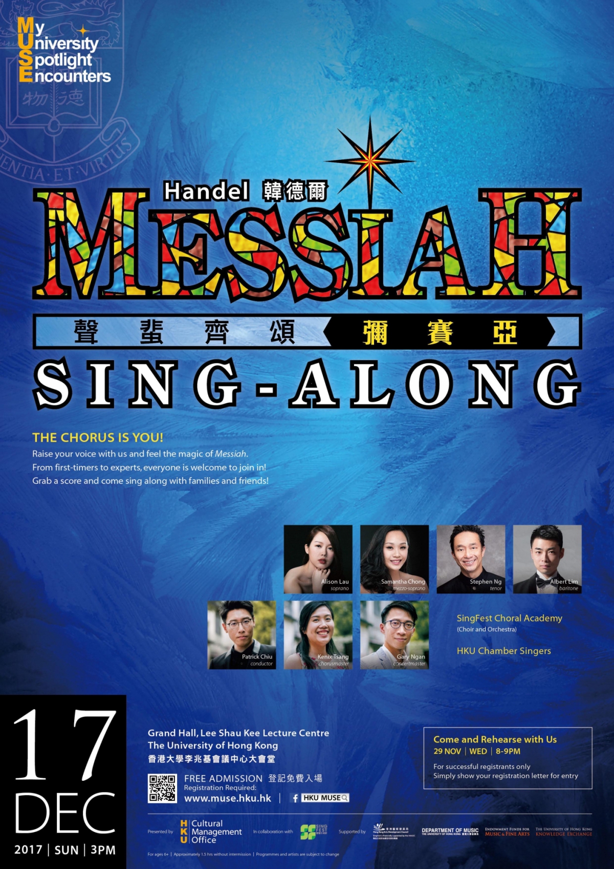 Handel’s Messiah is perhaps one of the most performed choral works in Western music history. The full cast on stage and exuberant melodies of the Hallelujah chorus, in particular, make the oratorio an all-time favourite in festivals and concerts outside church settings. Led by guest soloists, SingFest Choral Academy, and the HKU Chamber Singers, this sing-along concert will engage everyone to take part in the chorus, contributing to the musical grandeur. Prior to the season’s greetings, let us invite YOU to co-present Handel’s immortal masterpiece and conclude the evening with a resonating Hallelujah!
