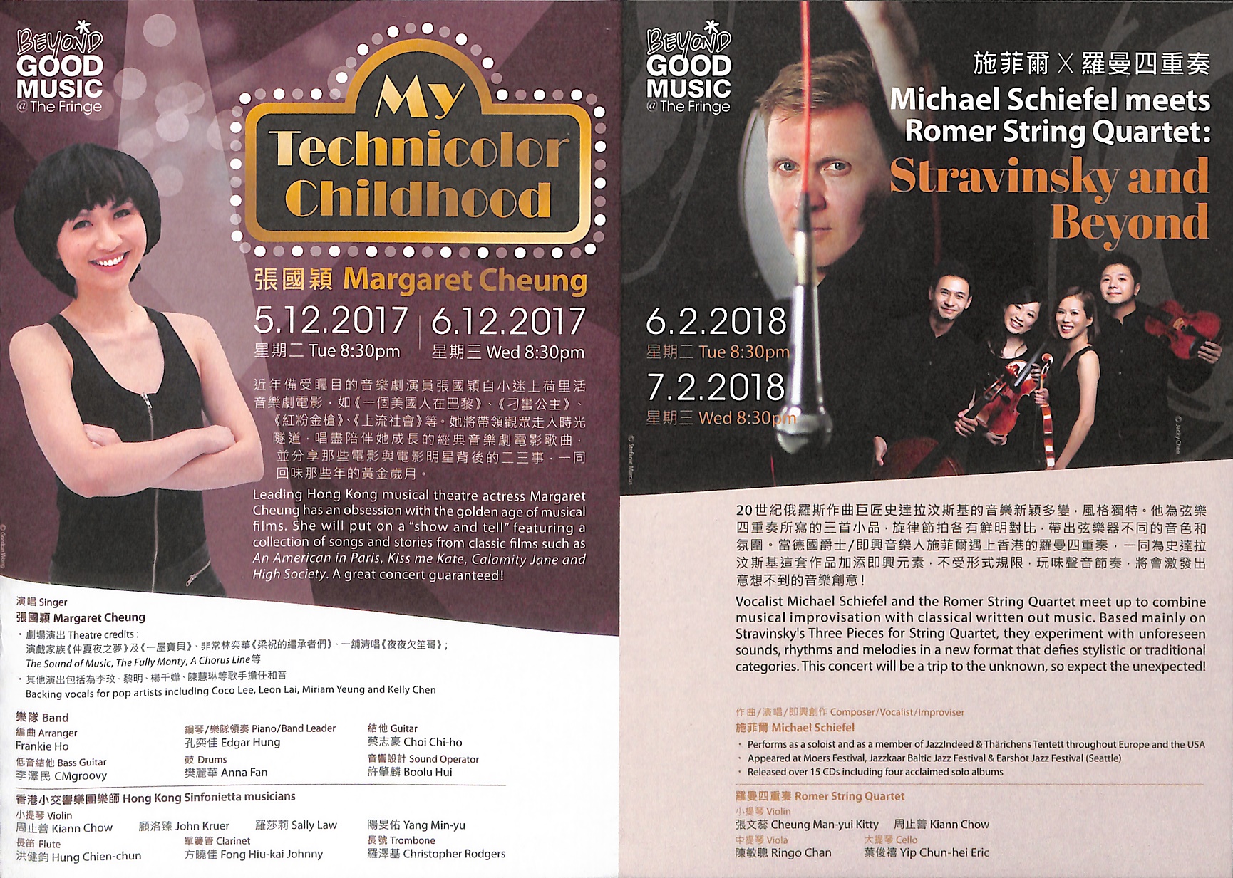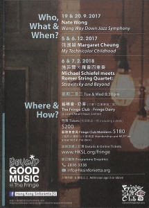 20世紀俄羅斯作曲巨匠史達拉汶斯基的音樂新穎多變,風格獨特,為不少後世音樂家帶來衝擊和靈感。他為弦樂四重奏所寫的三首小品,旋律節拍各有鮮明對比,帶出弦樂器不同的音色和氛圍。當德國爵士/即興音樂人施菲爾遇上香港的羅曼四重奏,一同為史達拉汶斯基這套作品加添即興元素,不受形式規限,玩味聲音節奏,將會激發出意想不到的音樂創意!