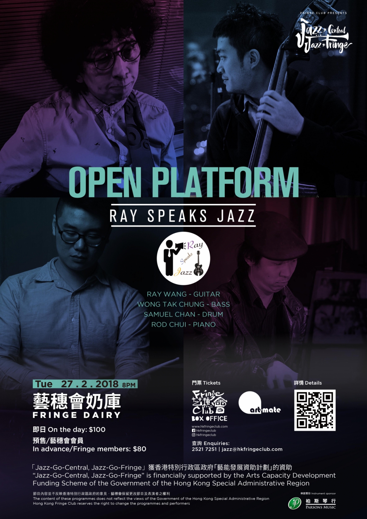 *「Jazz-Go-Central, Jazz-Go-Fringe」獲香港特別行政區政府「藝能發展資助計劃」的資助