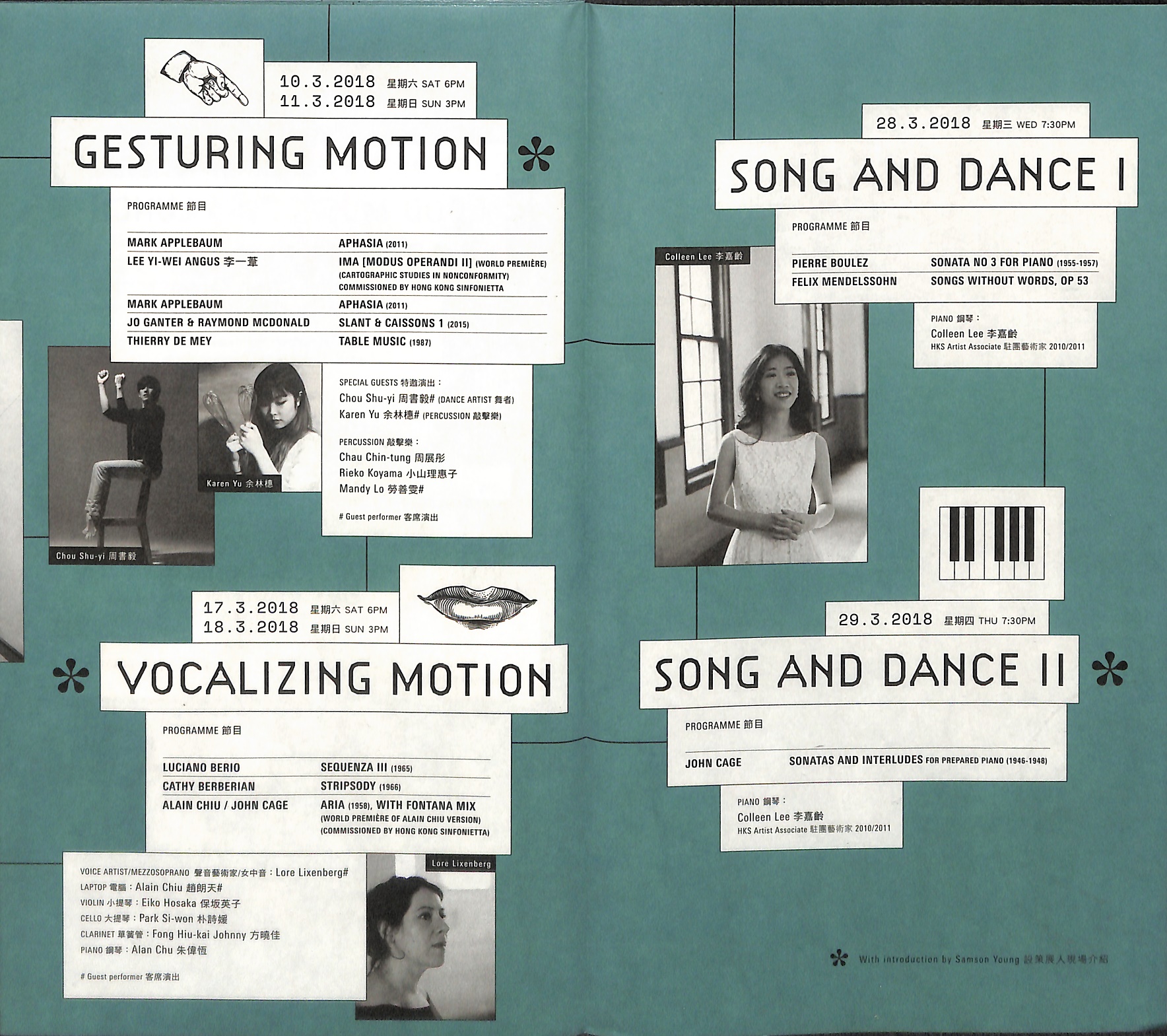 由香港小交響樂團主辦及太古地產贊助,香港作曲家/多媒體藝術家楊嘉輝及聲音掏腰包(soundpocket)創辦人楊陽攜手呈獻,以古典至現代作曲家的記譜模式作起點,結合展覽及音樂演出,探索樂譜、演奏者與觀眾的多重關係。展覽將會展出從世界各地搜集的樂譜手稿以及不同藝術媒界的作品,而一系列特地設計的音樂會將會與展品互相呼應,揭示音樂家把樂譜上的音符轉化為音樂演奏的過程。香港小交響樂團樂師將與著名的澳洲組合Ensemble Offspring一同演出,引領觀眾走進演奏者的世界。